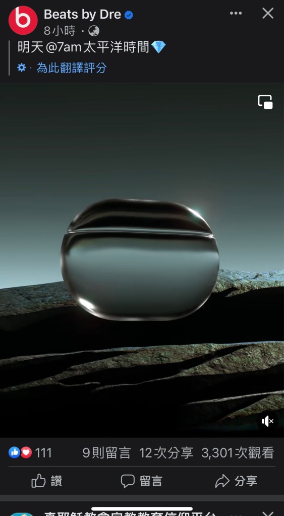 Beats終於在台灣時間昨天晚上12點在自己的粉專「Beats by Dre」發布了預告,即將在太平洋時間早上7點上是全新的Beats耳機,其實早在幾個星期前Apple就不小心在Amazon上架名為Beats Studio Buds +的產品了,後來把它下架了,大家就拭目以待,看看會不會真的是傳很久的透明Beats Studio Buds +吧!