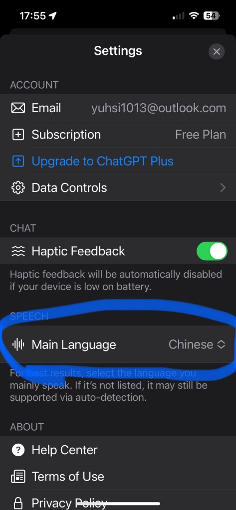 但OpenAI在今天提供給台灣的用戶下載ChatGPT App了!我個人是覺得不錯用,畢竟我也用了一陣子的時間,從推出第一天到現在,App預設是英文,如果你想要調成中文的話,可以點右上角三個點點的icon-setting-Main Language ,選擇Chinese就可以囉!