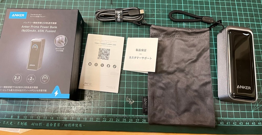 主要的內容物就是行動電源、C to C的編織線、收納袋、保證書、說明書,看起來很帥氣,充滿了科技感。